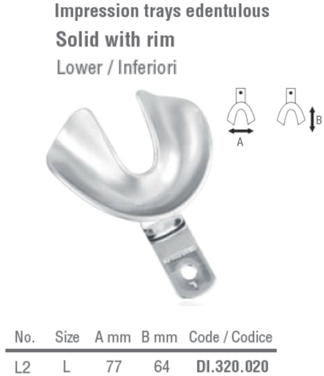 Previous Product Next Product Impression tray edentulous solid lower fig.2, size L Rp110.000 SKU: DI.320.020 Category: Impression Tag: Impression Impression tray edentulous solid lower fig.2, size L quantity Add to cart