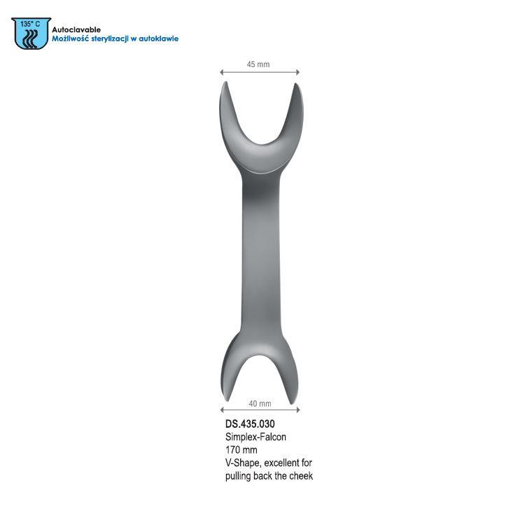 Retractor cheek DE Falcon-Simplex V-shape 170mm